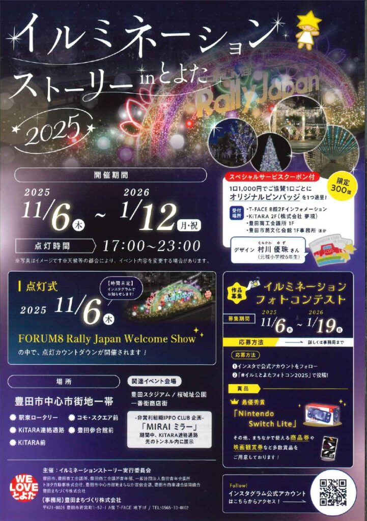 | 問合せ | (事務局)豊田まちづくり株式会社 〒471-0026 豊田市若宮町1-57-1 A館 T-FACE 地下1F TEL:0565-33-0002  |