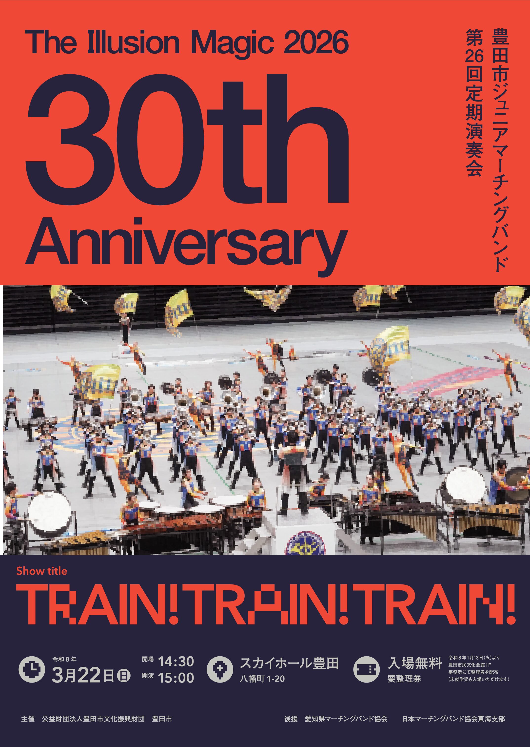 令和8年3月22日(日)に5年ぶりとなるスカイホール豊田で第26回定期演奏会を開催します。