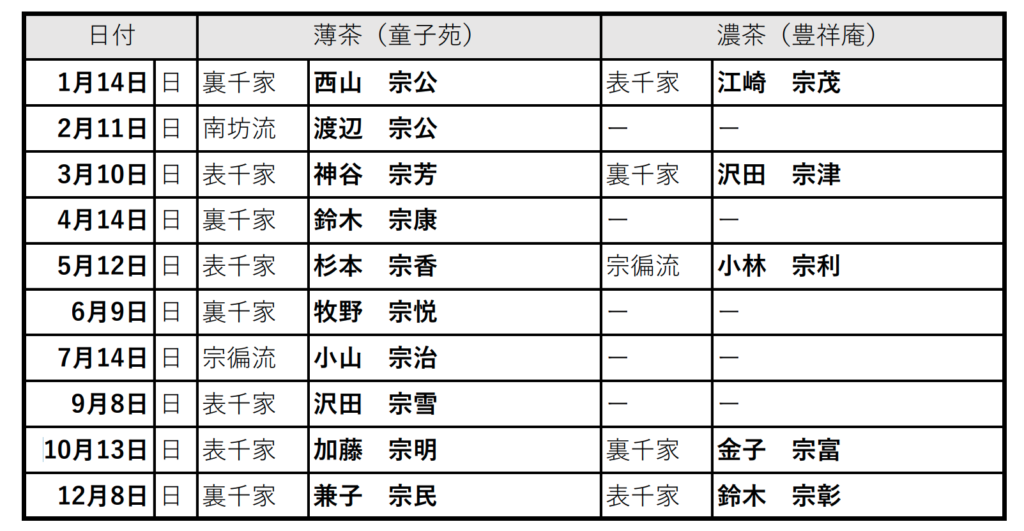 ※ 令和6年3月分から、濃茶席当日券の料金が1,200円に変更になりました。
